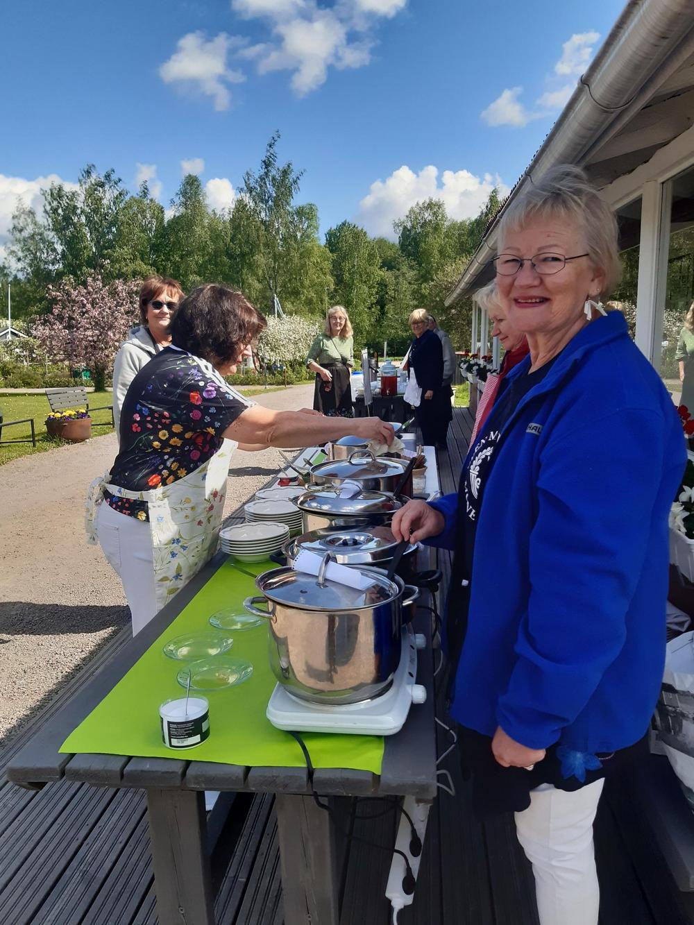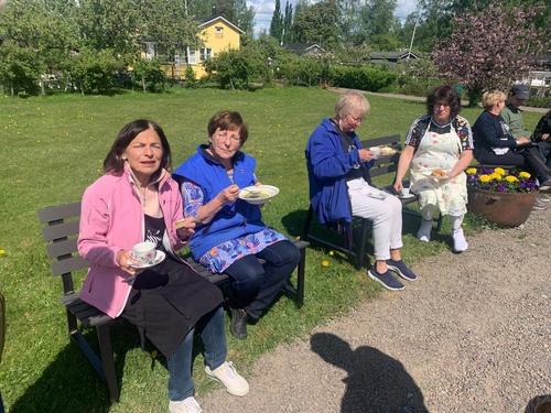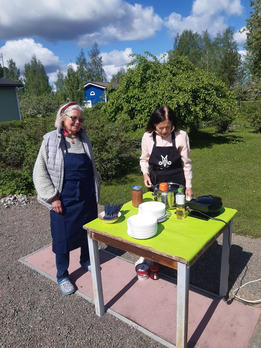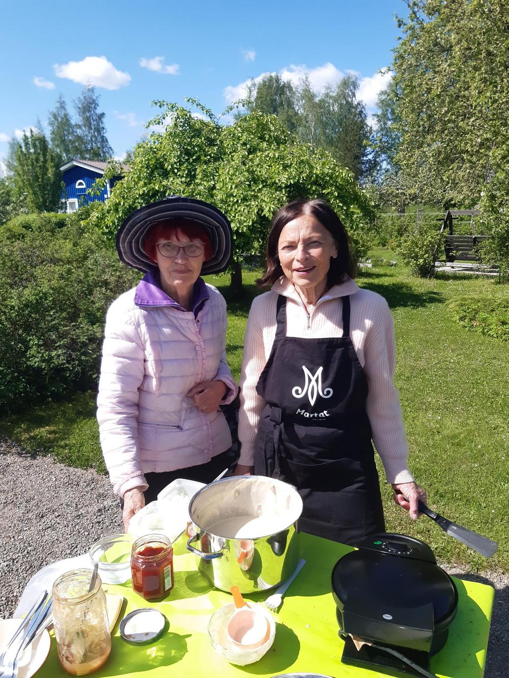 Pop-up -ravintolapäivä toi mukavaa vaihtelua Linnan Marttojen toimintaan. Paikaksi valitsimme Kantolan siirtolapuutarhan tunnelmallisen juhlatilan ja pihan, jossa järjestimme ravintolapäivän jo viime vuonna. Muutamien koleiden päivien jälkeen aurinko paistoi ja puutarhapalstat olivat puhkeamassa kukkaloistoonsa. Herkkiä lemmikkejä kukki kaikkialla ja niitä riitti myös ruokapöytien pikku kimppuihin.