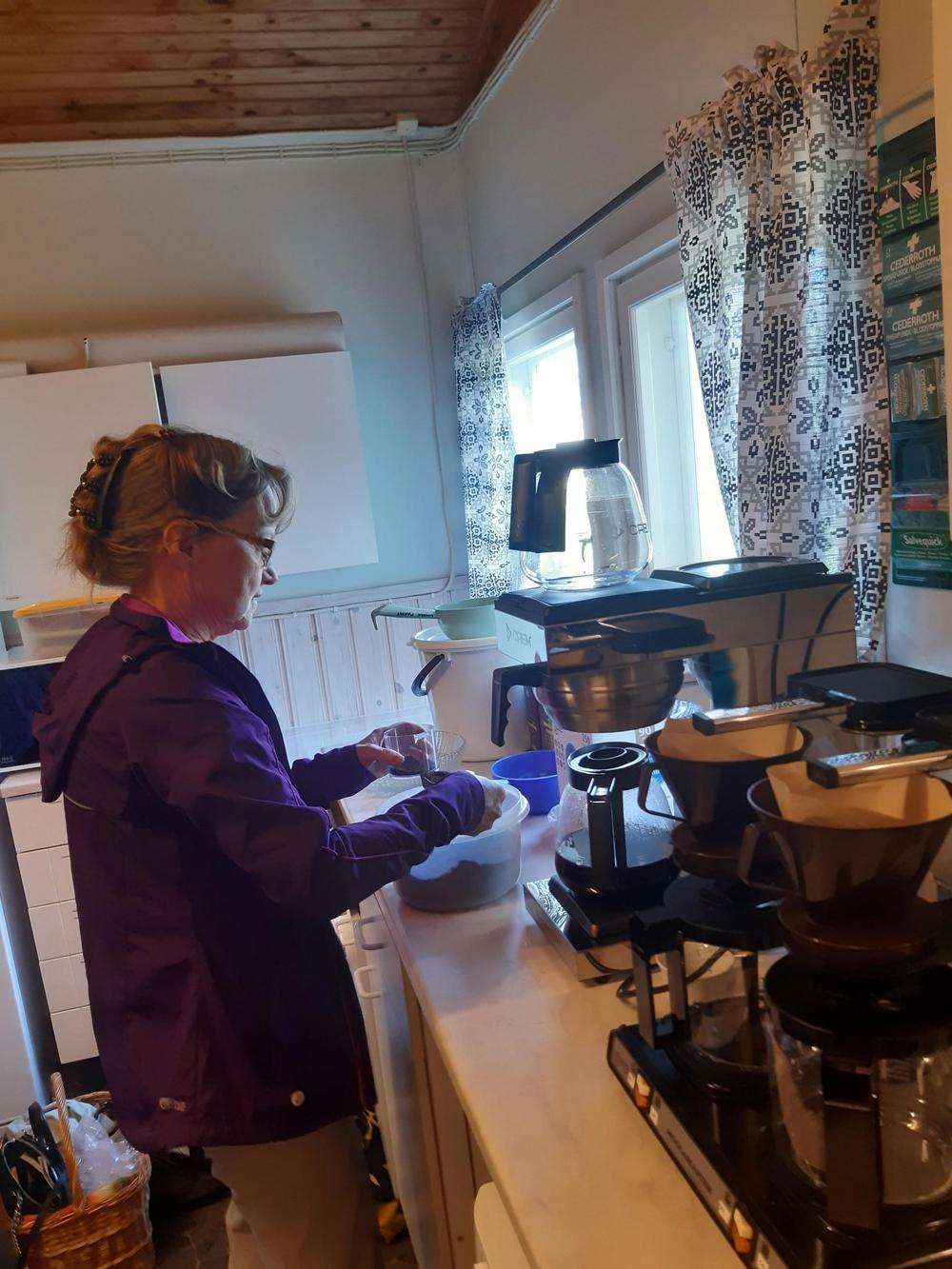 Järjestelyt sujuivat sutjakasti ja lounastajia alkoi tulla heti yhdentoista jälkeen. Herkulliset keitot myytiin viimeistä pisaraa myöten ja kaikkien kävijöiden herkku Mummolan makkarakeitto loppui ensimmäisenä. Tarjolla oli myös maukkaat Papan kinkku-borssikeitto ja Martan metsäsienikeitto. Uusina makuina olivat Porkkana-appelsiinikeitto ja Liperi-nokkoskeitto, joita asiakkamme kehuivat todella herkkullisiksi. Oli palkitsevaa katsoa, kun vieraamme nauttivat ruoan jälkeen herkullisia leivonnaisia ja vohveleita, joita ei mistään muualta saa. Hyvä ruoka, parempi mieli -sanonta toteutui konkreettisesti.