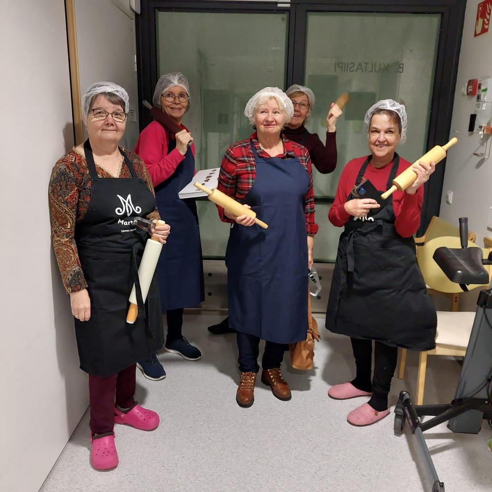 Voutilakeskuksen väki toivotti Linnan Martat tervetulleiksi toistenkin vaikkapa karjalanpiirakoita leipomaan.