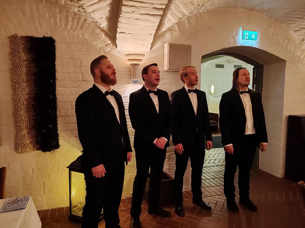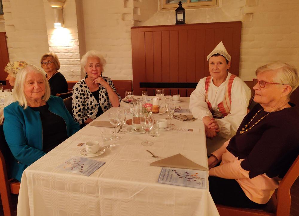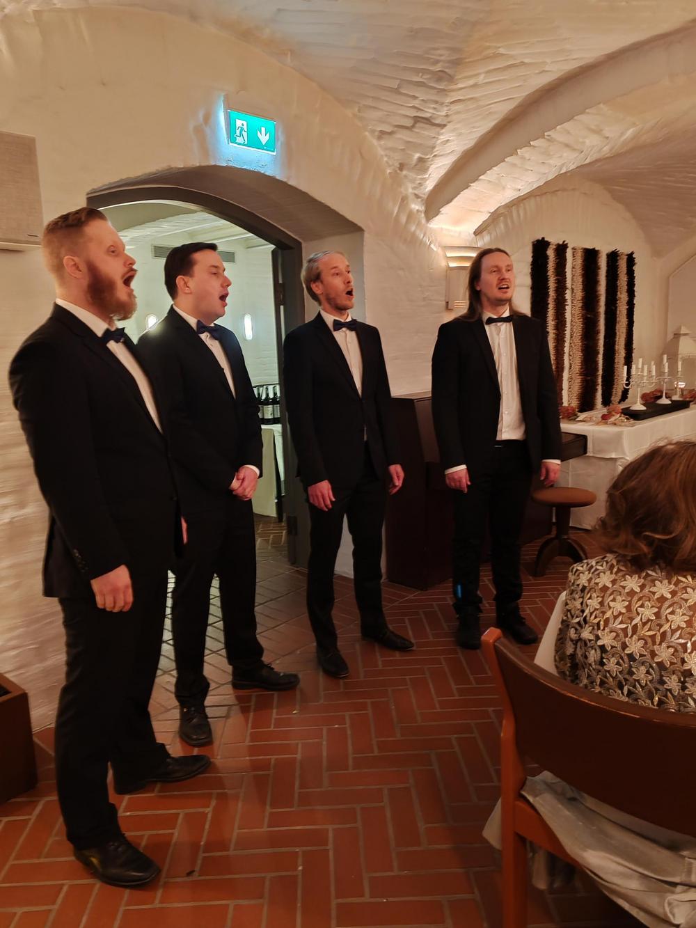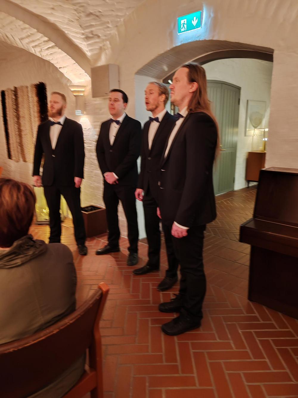 Vanajan mieskuoron kvartetti viihdytti meitä useaan otteeseen kanuniilla kappaleilla ja serenadikin kuultiin. Innostuimmepa myös yhdessä laulamaan Marttalaulun ja Aikuisen naisen - sehän 35-vuotias yhdistyksemme nyt on.