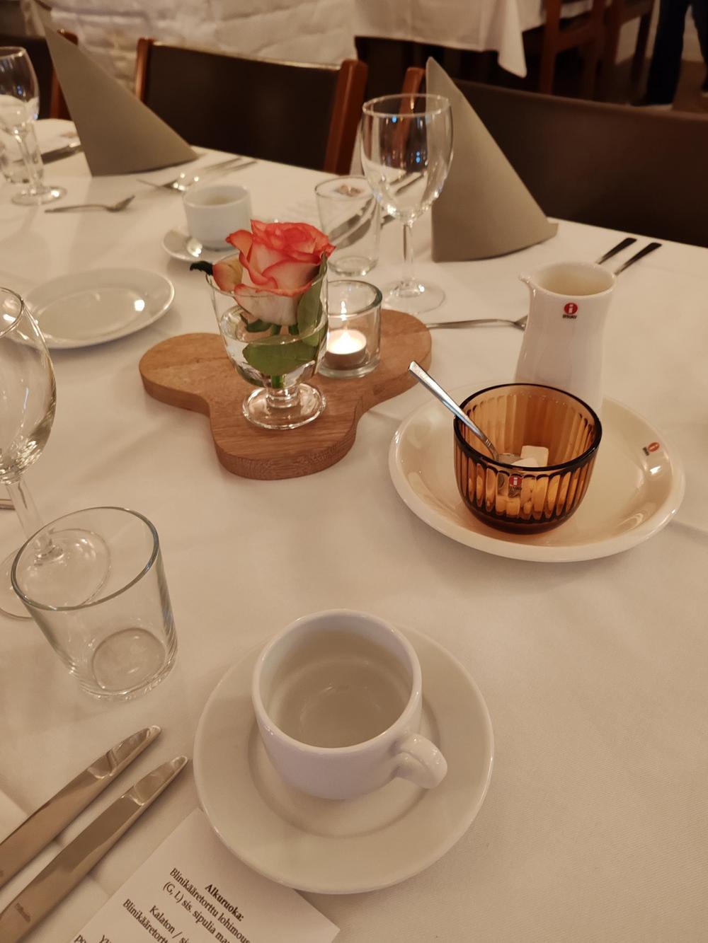 Hiukan harmitti, kun juhlat loppuivat kesken. Olisimme viihtyneet tunnin verran pitempään. Tämä karun joustamaton lopetus johtui pelkästään Raatikellarin turvallisuussäännöistä. Virallinen ajan pidennys olisi kouraissut kukkarostamme kohtuuttoman suuren summan. Seuraavalla kerralla