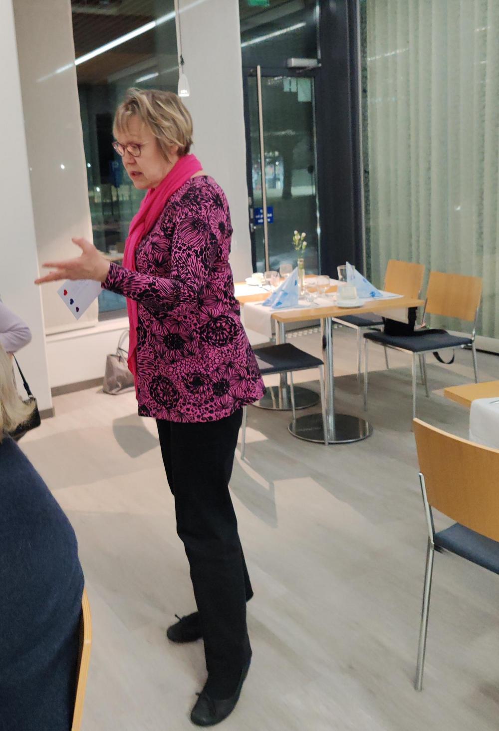 Varsinainen kokous soljui täsmällisesti eteenpäin puheenjohtaja Eliina Hakulan reippaiden nuijaniskujen rytmittämänä. Hienoa, että meitä oli vuosikokouksessa runsas joukko, 33 henkeä. Kiitos jäsenille aktiivisesta osallistumisesta. On yhdistyksiä, joilla on vaikeus saada vuosikokoukseen edes minimimäärää osallistujia, jotta kokous on päätäntävaltainen. Iloitsin ja koin erittäin positiivisena, kun jäsenet esittivät muutamia kysymyksiä ja jättivät hallitukselle pohdittavaksi joitakin parannusehdotuksia. Se on todellista yhdessä kehittämistä.