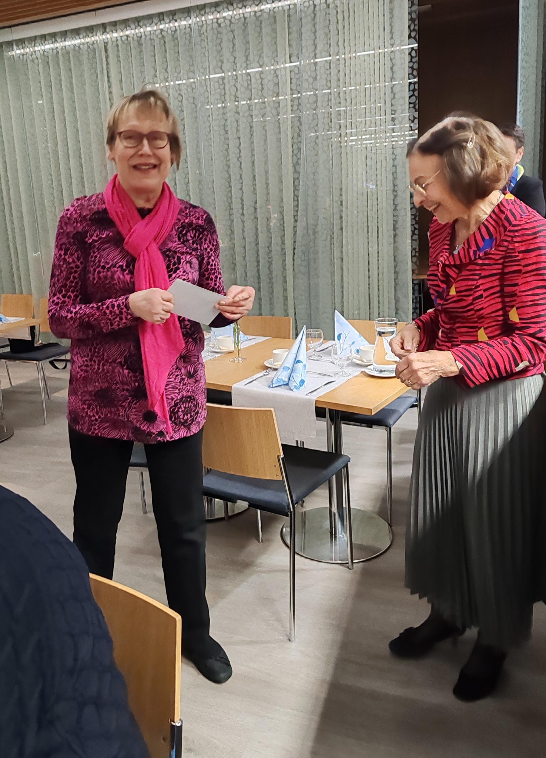 Vuoden 2025 martaksi julistettiin vesijuoksijoiden vastuullinen vetäjä Eija Joensuu. Monivuotista toiminnantarkastajaamme Raili Vuorista kiitimme pienellä lahjakortilla, kun jouduimme hänen toivomuksestaan vapauttamaan hänet tehtävästään. Tavan mukaan ojensimme pienen lahjan 80 ja 70 vuotta täyttäneille läsnä oleville jäsenillemme. 80 – vuotiaita oli vain yksi, Mirja Toivonen, ja 70 – vuotiaita kolme, Satu Laine, Helena Mattila ja Pirjo Vilja.