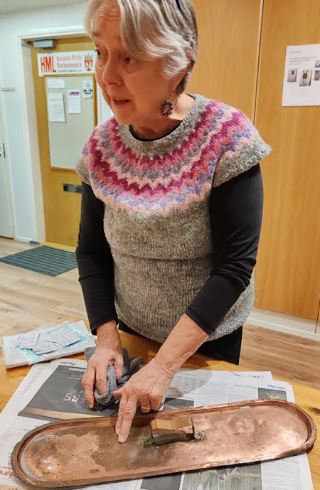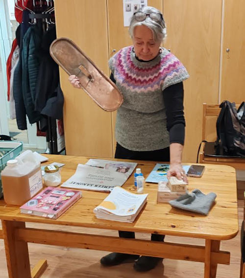 Esityksen aloitti marttamme Anni Outinen-Jones. Hän suositteli meille luettavaksi monipuolista Ellinor Sirénin EKO-siivojan käsikirjaa, josta reseptit 1-3 on lainattu. Mielenkiintoista oli nähdä, miten kätevästi Anni puhdisti pinttyneen kuparikannen suolan ja etikan avulla. Hän muistutti myös, että hopean puhdistaminen vanhaa tinapaperi + kuuma vesi + sooda kikkaa käyttämällä onnistuu helposti. Tarkat ohjeet siihen löydät Martat-sivustolta. Yksi Annin luottoaineista on pellavasaippua. Monille meistä se on aivan uusi siivousaine, mutta eiköhän se Annin vinkkien innoittamana pian löydy siivouskaapeistamme.