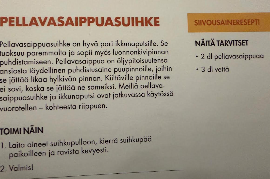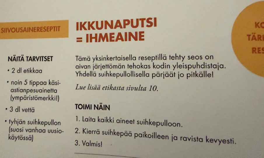 Puhdistusainereseptit 1-3 Ellinor Sirén, EKO-siivoojan käsikirja